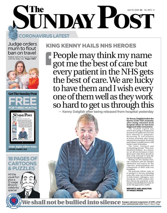 Ο Κένι Νταλγκλίς δεν χρειάστηκε περισσότερη νοσηλεία για τον κορονοϊό και από το βράδυ του Σαββάτου έχει πάρει εξιτήριο από το νοσοκομείο για να παραμείνει σε καραντίνα στο σπίτι του.